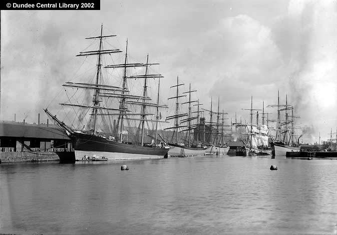 Los llamados Kyle Bristol, Linda, Marmora, Paket, y Clotilde, eran similares a estos barcos que vemos anclados en puerto, del tipo de tres mástiles. Más fotos, presione aquí (Fuente: http:www.dundeecity.gov.uk. Consulta realizada el 02/11/2002) |
