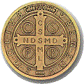 La cruz medalla de San Benito data de época muy antigua, su uso es conocido con certeza desde el siglo X. Representa de un lado la imagen de la Cruz y en el otro la del Santo Patriarca. Como todo Signo sagrado, y en virtud de ostentar la Cruz, que es el instrumento de nuestra salvación, la medalla de San Benito recuerda al fiel que la lleva con devoción, la presencia constante de Dios y su protección a la vez que lo preserva de las tentaciones y lo guía y lo alienta en la vida. Por tener grabada en la cruz un exorcismo, es un arma eficaz contra el demonio y sus acechanzas. En los cuatro ángulos de la Cruz hállanse grabadas las siguientes iniciales: C.S.P.B. que significan: CRUX SANCTI PATRIS BENEDICTI Cruz del Santo Padre Benito |